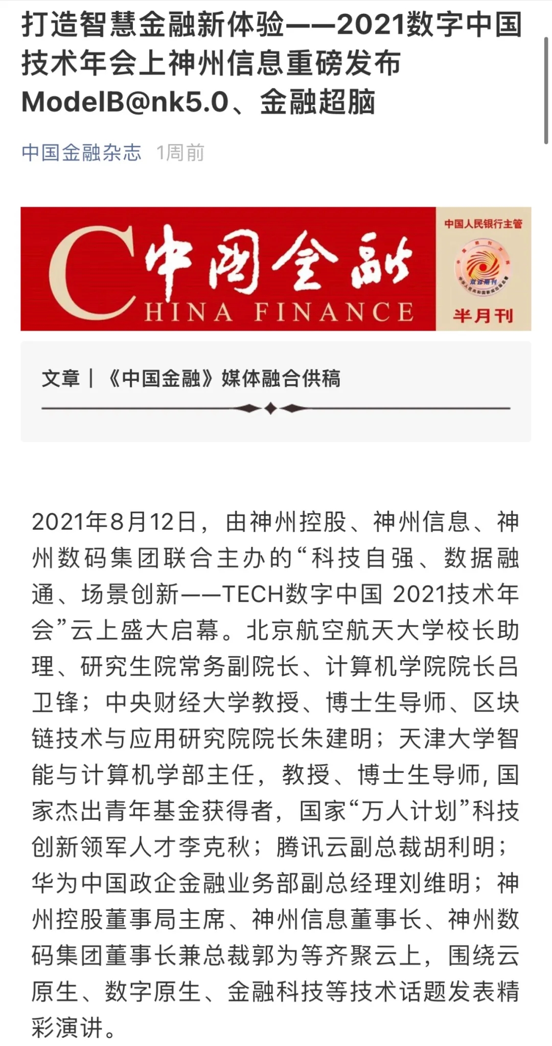 打造智慧金融新体验 神州信息重磅发布ModelB@nk5.0、金融超脑
